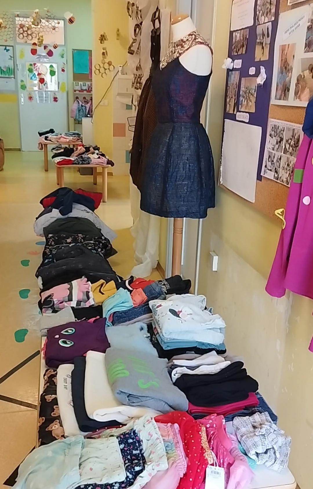 Vrhunec našega projekta je bila izmenjevalnica oblačil. Organizirali smo jo v prostorih vrtca. Otroci so skupaj s starši prinesli oblačila, ki jih ne potrebujejo več in si izbrali nova, ki jih sedaj večkrat oblečejo za v vrtec.